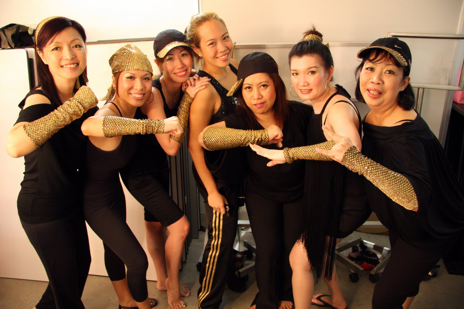My "The Time" team above with their cool black n gold costume backstage and my "Waka Waka" team below with their colourful whimsical costumes as they get all dolled up and psyched for the stage performance... I thought they looked great! Each & every one of them... thank you for the effort!!
